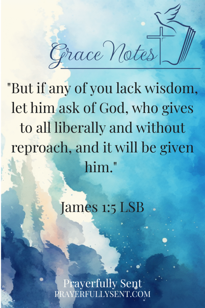 “But if any of you lack wisdom, let him ask of God, who gives to all liberally and without reproach, and it will be given him.” – James 1:5 { Legacy Standard Bible}